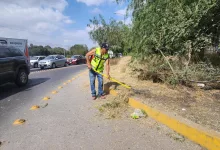Mejoran acceso principal de Villa de Pozos con jornada de limpieza