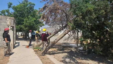 Gobierno de Villa de Pozos atiende caída de árboles por fuertes vientos