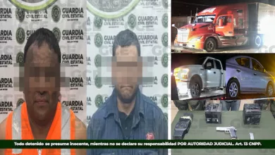 Guardia Civil Estatal Detiene a Dos Sujetos con Tractocamiones Robados en Carretera Federal 57