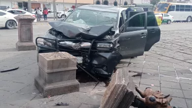 Conductor de plataforma choca y causa daños a infraestructura pública