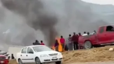 Un aparatoso choque entre dos tractocamiones desató un incendio que consumió por completo ambas unidades sobre la carretera Matehuala. Cuerpos…