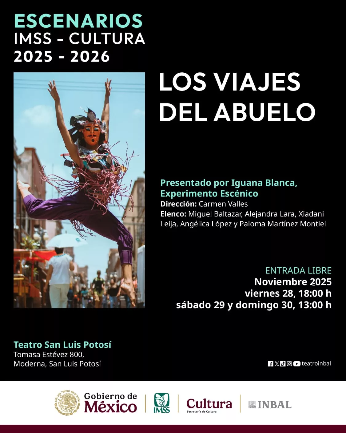 Como parte de la gira “Escenarios 2025-2026” que impulsan el Instituto Mexicano del Seguro Social (IMSS) y el Instituto Nacional de Bellas Artes y Literatura (INBAL), a partir de este fin de semana, el Teatro del IMSS San Luis Potosí abrirá sus puertas al público en general para disfrutar de las obras escénicas con entrada gratuita.