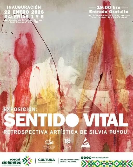 La Secretaría de Cultura de Gobierno del Estado invita a la inauguración de la colección “Sentido vital” retrospectiva artística de Silvia Puyou, exposición curada por Franco Alfaro, bajo la gestión de Iliana Anaís, misma que se realizará el jueves 22 de enero a las 19:00 h en el Centro de Difusión Cultural del Instituto Potosino de Bellas Artes, entrada libre.