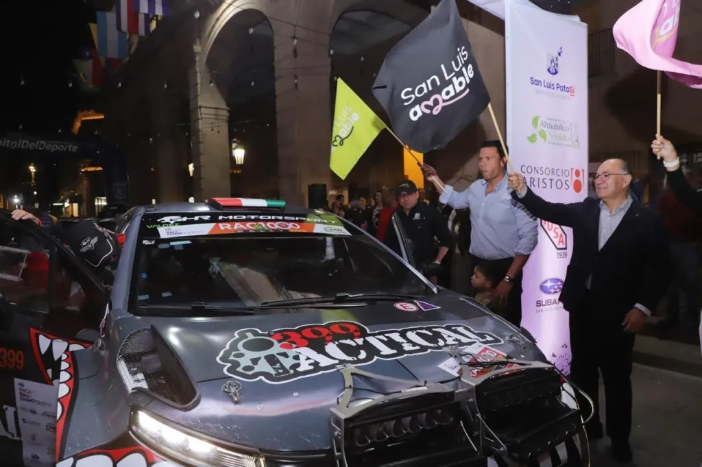San Luis Potosí.– Con el banderazo de salida en la Plaza de Armas, a cargo del Presidente Municipal Enrique Galindo Ceballos, inició la etapa correspondiente a San Luis Potosí del NACAM Rally Championship RAC 1000, que disfrutaron los potosinos la noche de este viernes. El evento marcó la apertura de las actividades deportivas del Festival Internacional San Luis en Primavera 2025.