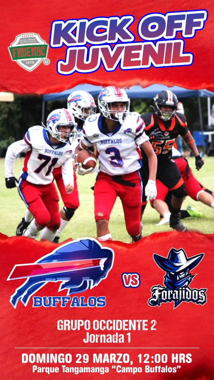 En la categoría Juvenil, el equipo hará su presentación oficial en el Kick Off de FADEMAC enfrentando a Forajidos en duelo correspondiente al Grupo Occidente 2. El encuentro se llevará a cabo este domingo 29 de marzo a las 12:00 horas en el Parque Tangamanga, donde Búfalos buscará imponer su estilo desde el inicio de la campaña. Con una base sólida, el conjunto apunta a ser protagonista gracias a su equilibrio ofensivo y una defensiva agresiva y disciplinada.