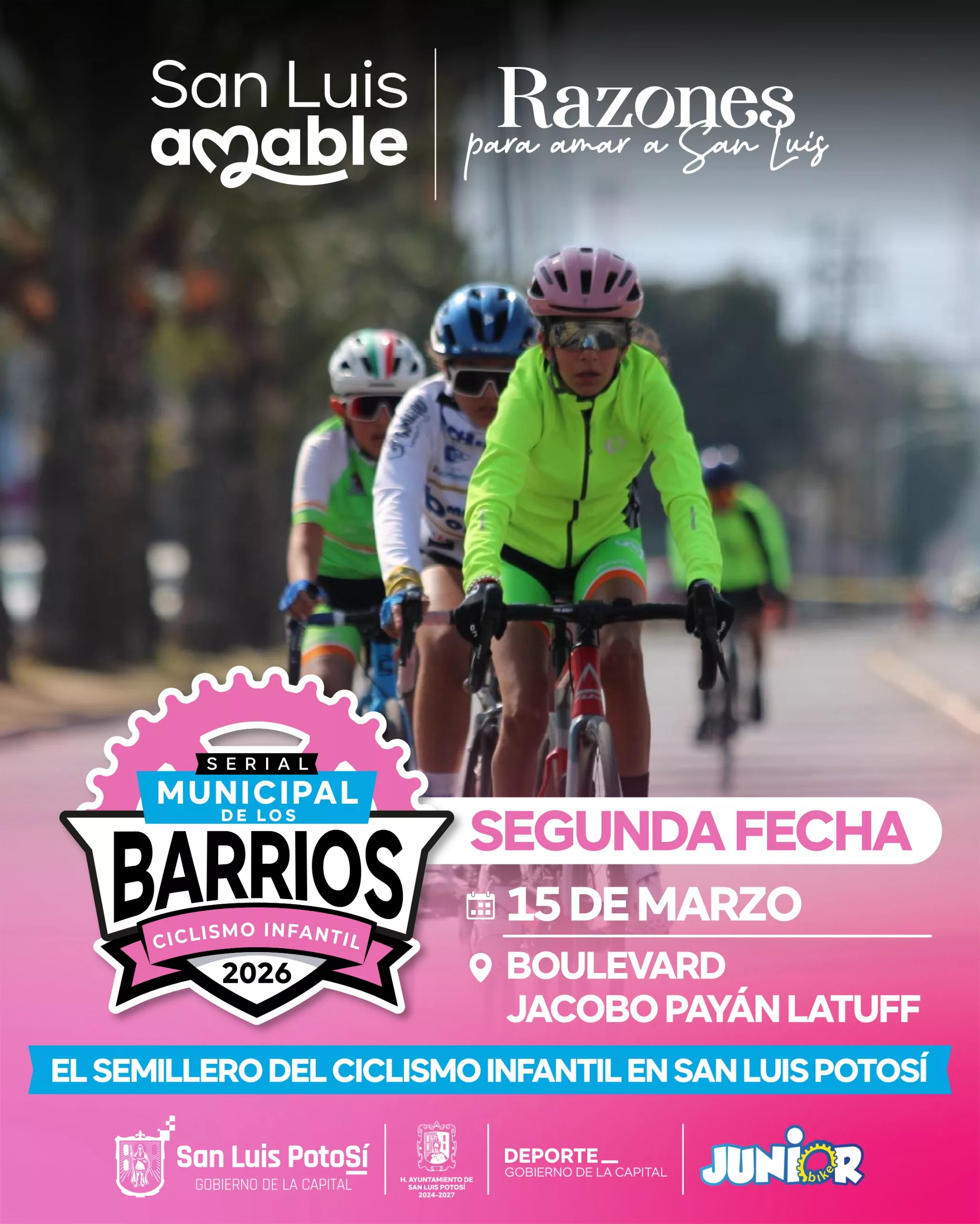 San Luis Potosí. – La Dirección del Deporte del Gobierno de la Capital, continua con la actividad del Serial Municipal de Ciclismo Infantil de los Barrios 2026, el semillero del ciclismo de ruta, que ha permitido impulsar a las nuevas generaciones.