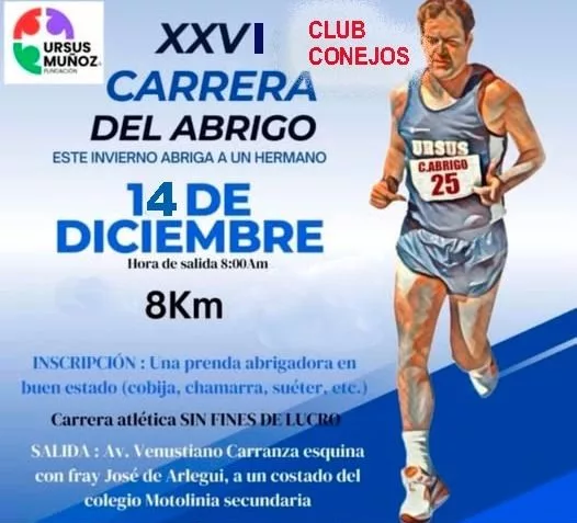 El próximo 14 de diciembre a partir de las 8:00 horas se realiza la Carrera Atlética “Del Abrigo – Ursus Muñoz”, de 3 y 8 kilómetros, que tiene como objetivo recaudar ropa abrigadora.