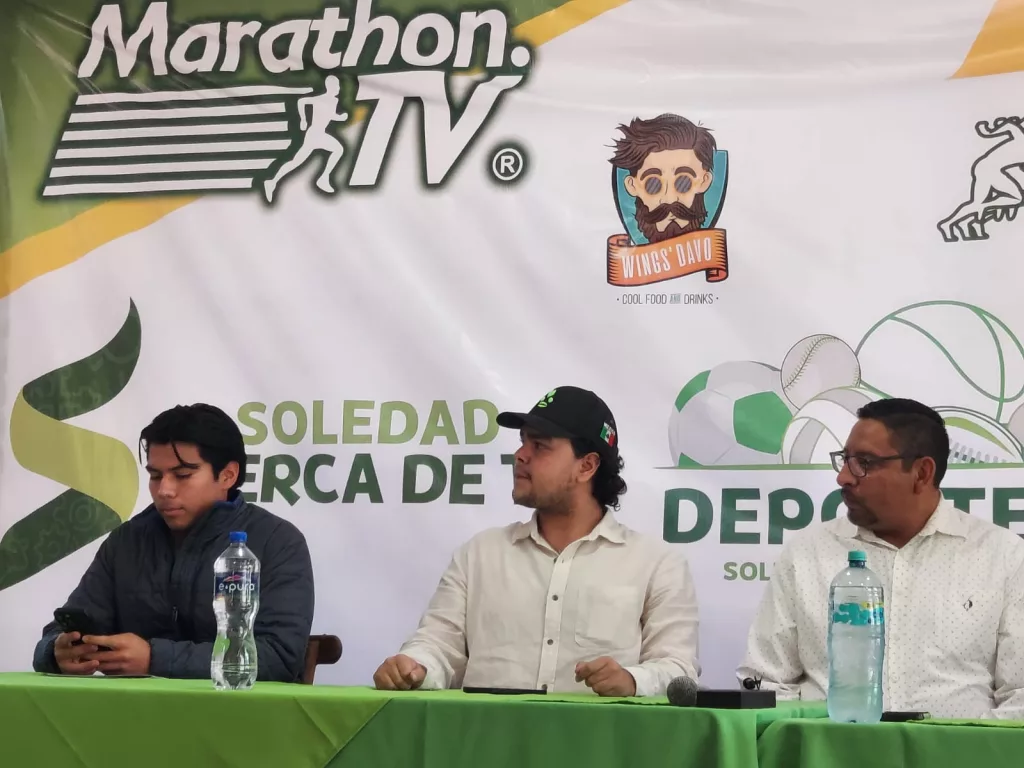 Esta mañana, se presentó oficialmente la carrera atlética Marathon.TV, un evento de carácter internacional que busca ofrecerle a atletas mexicanos la oportunidad de competir frente a los mejores exponentes de Latinoamérica sin tener que salir del país. La rueda de prensa de presentación confirmó los detalles del evento, que cuenta con el aval de la Federación Mexicana de Asociaciones de Atletismo y el respaldo de la Presidencia Municipal de Soledad de Graciano Sánchez, Los Centros Estatales de Cultura y Recreación Tangamanga I y II y la empresa Tu Tiempo a Tiempo.