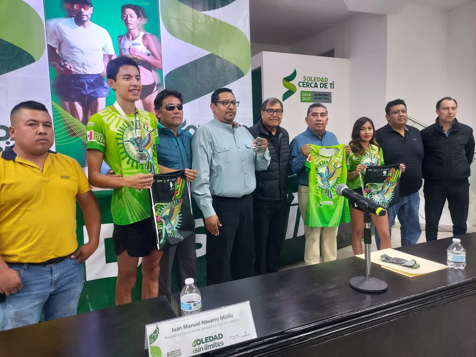 La rueda de prensa contó con la presencia del presidente municipal, Juan Manuel Navarro Muñiz; el director operativo del Parque Tangamanga 2, Daiman Ramírez; el subdirector de Coordinación de Deportes, Hugo Omar Esquivel Montoya; el director de Marathon.TV, Juan José Martínez; y el director de Tu Tiempo a Tiempo, José Luis García.