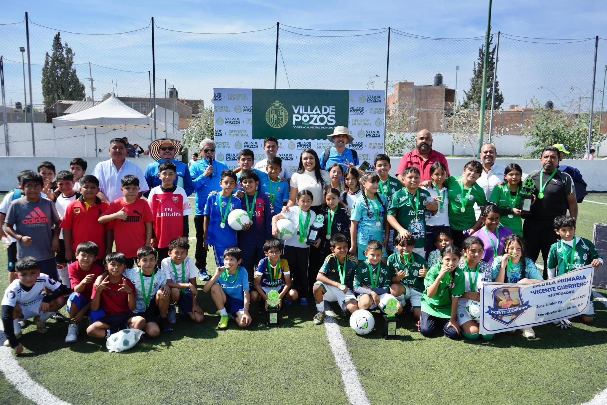 El Gobierno Municipal de Villa de Pozos, a través de la Dirección de Deporte, llevó a cabo la ceremonia de premiación del torneo “Futbol 5 contra 5”, correspondiente a la edición XXVII de los Juegos Deportivos Estatales de la Educación Básica 2025-2026, realizado en la Unidad Deportiva Villas del Sol.