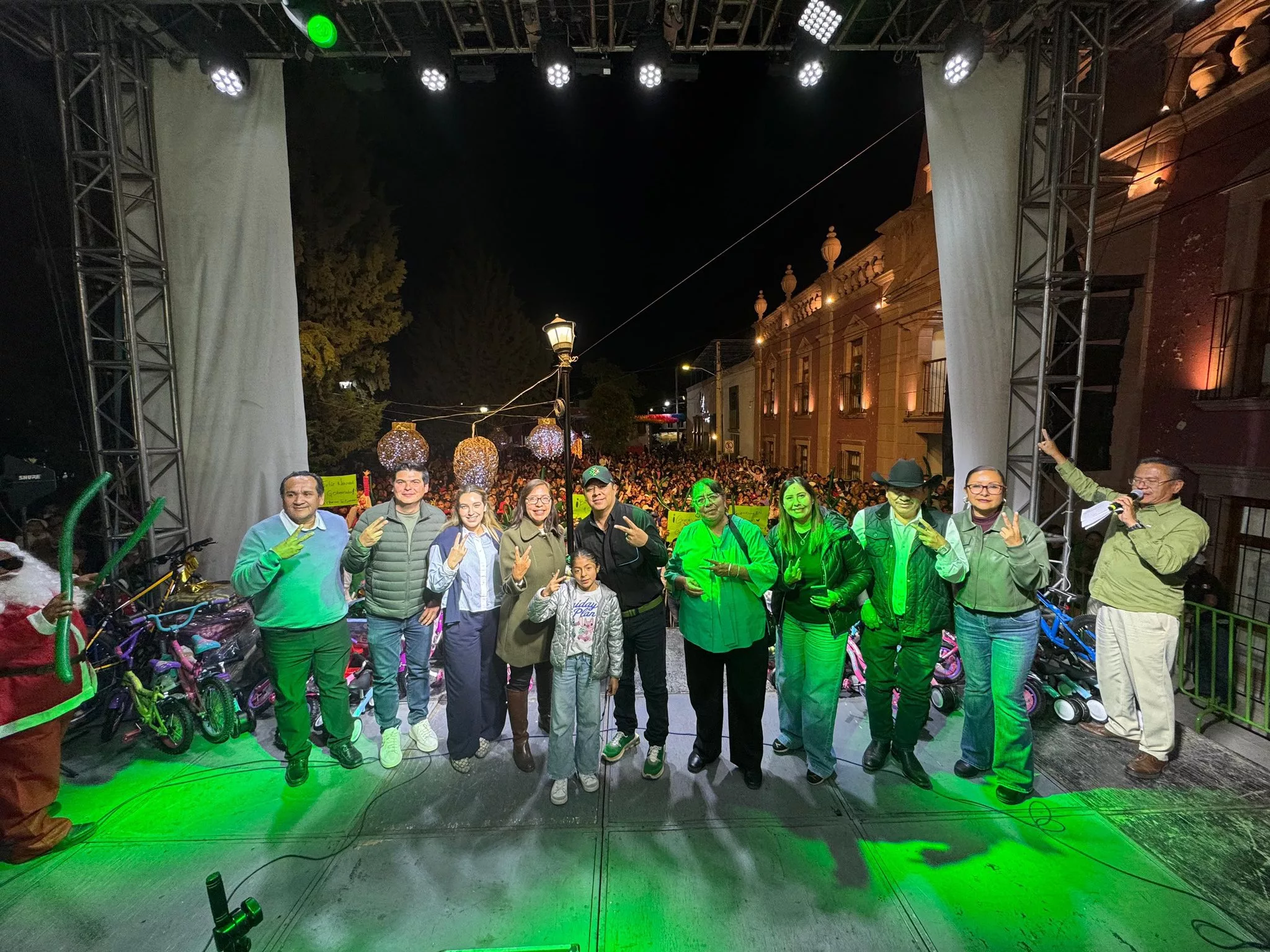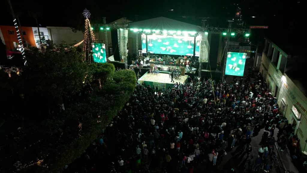 En Venado, con la feria regional de fondo, Dani Gallardo tomó el micrófono y les deseó a las familias una feliz navidad y muchas bendiciones para todas y todos, mientras que el Gobernador reiteró que las posadas navideñas llegarán a todos los municipios, con más regalos, música en vivo y dinámicas para la niñez, como un reconocimiento al esfuerzo de las familias potosinas, por lo que invitó a la población a seguir participando en estas celebraciones que fortalecen la unidad en está época decembrina.