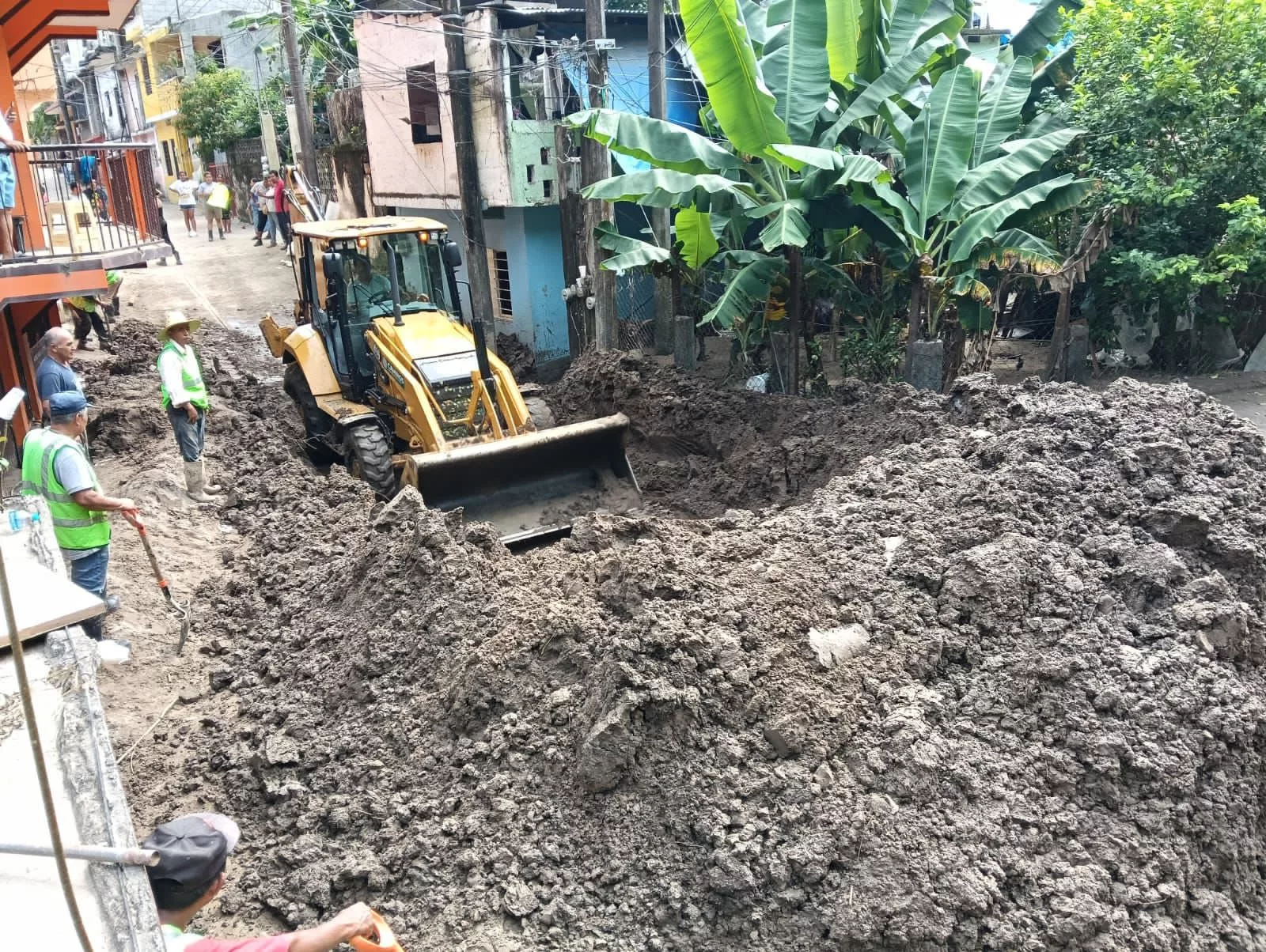 En Tamazunchale, brigadas de la JEC trabajaron en la limpieza de calles en el Barrio del Carmen, Colonia San Rafael y Colonia Estrella, afectadas por lodo y escombros.