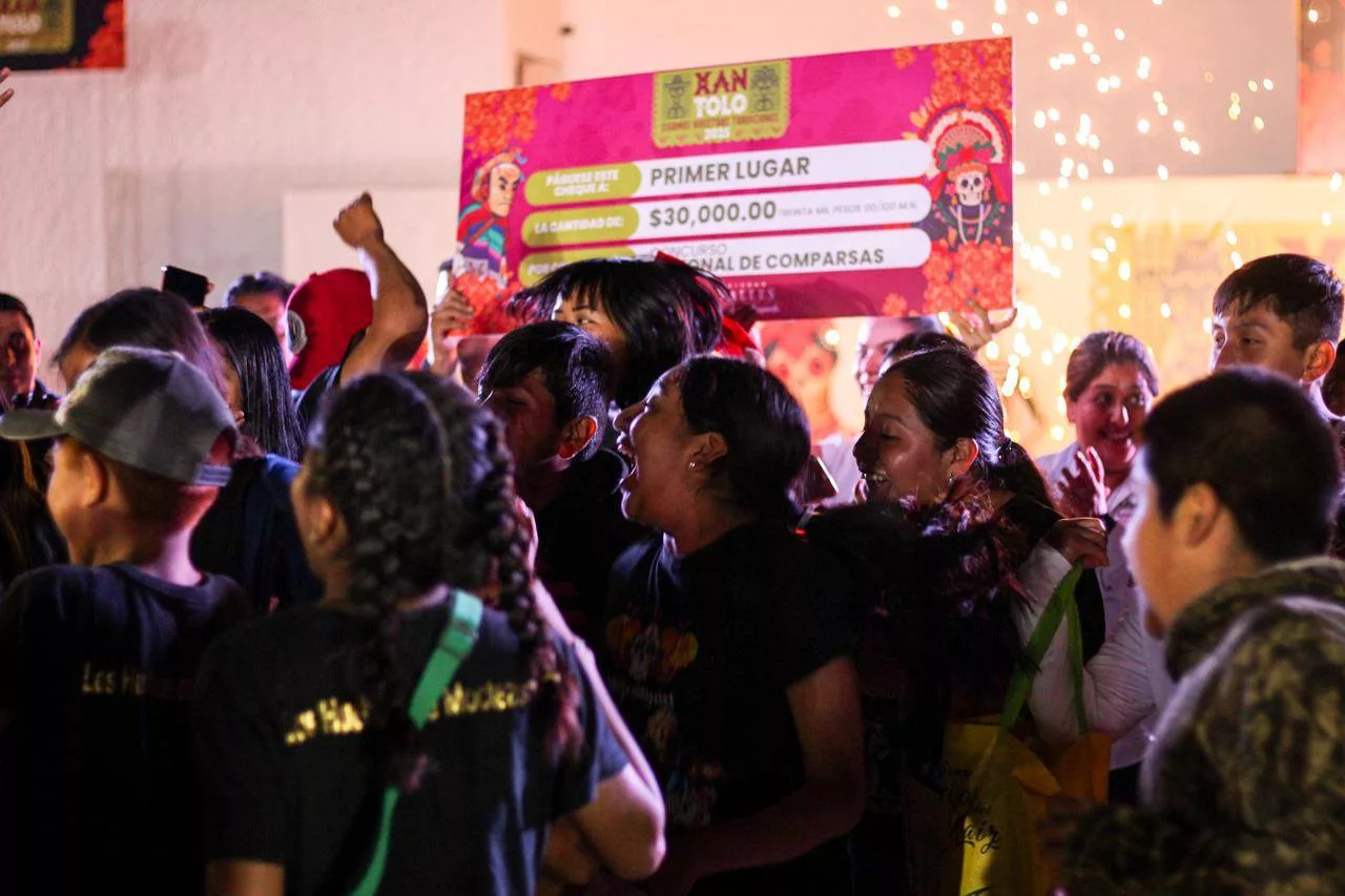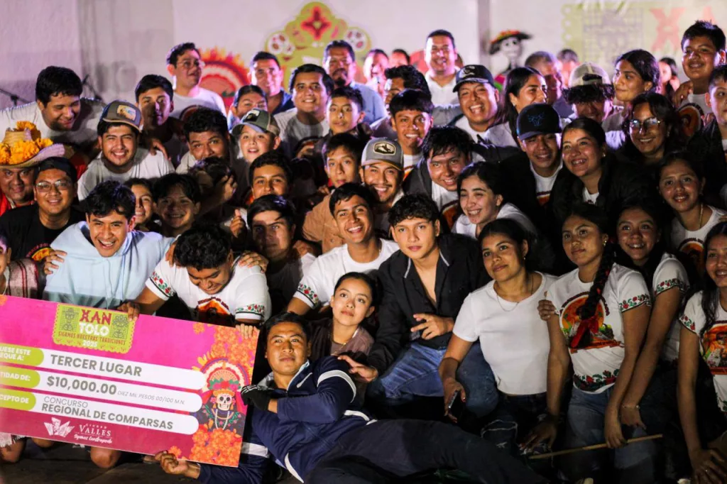 En el cierre del Festival Xantolo 2025 “Sigamos Nuestras Tradiciones”, miles de familias se reunieron en los terrenos de la feria para ser testigos de este evento, donde el segundo lugar lo obtuvo la comparsa de Ciudad Valles, compuesta por integrantes de las comparsas Parranda El Consuelo y Corazón Huasteco, quienes se llevaron un premio por la cantidad de 20 mil pesos; el tercer lugar fue para “La Tradicional de Matlapa”, llevándose un incentivo económico por 10 mil pesos.