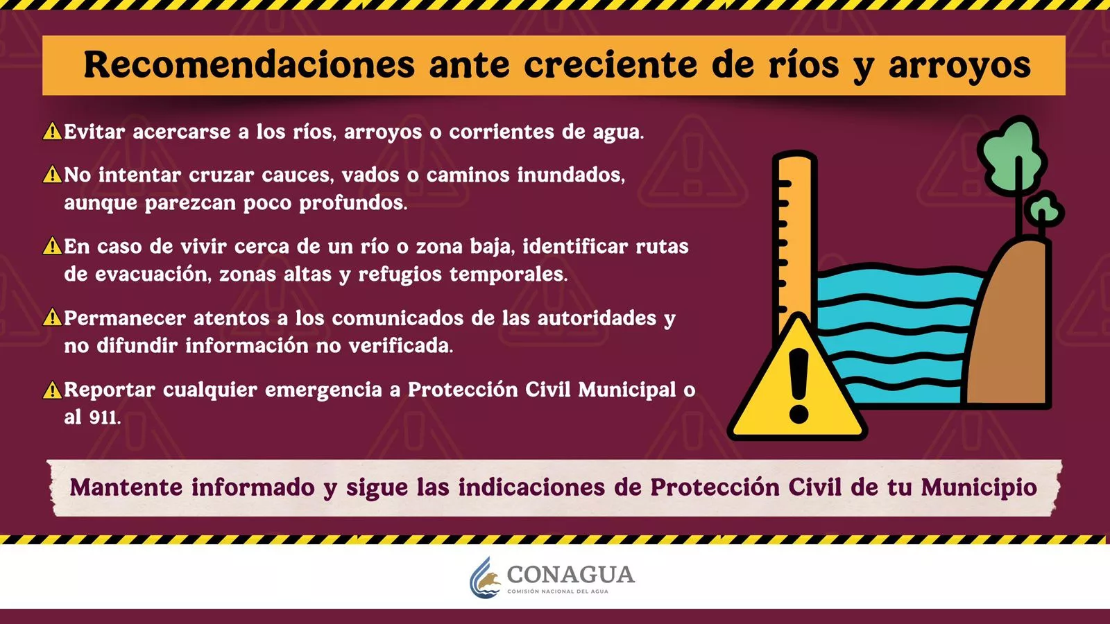 Ante esta situación, se exhorta a la población a atender los comunicados de Protección Civil de sus municipios, quienes coordinarán las acciones preventivas necesarias para salvaguardar a la población y sus bienes.