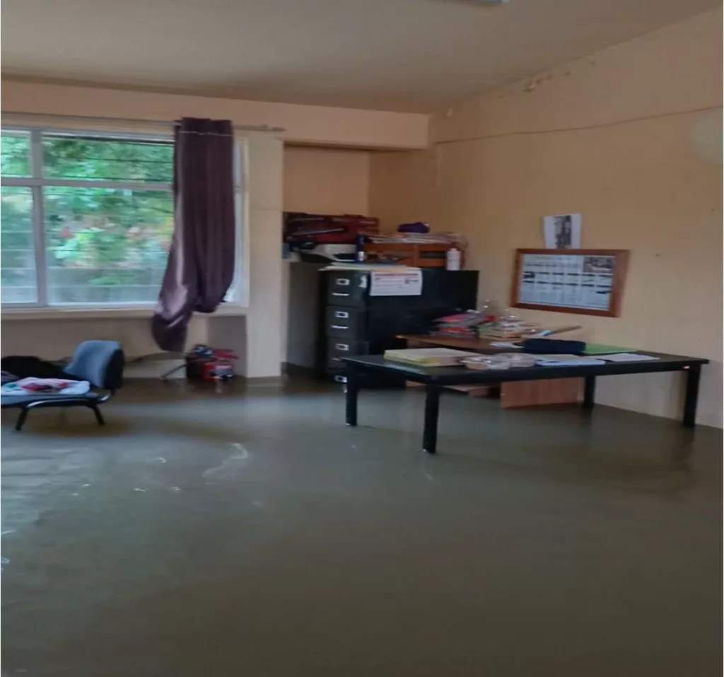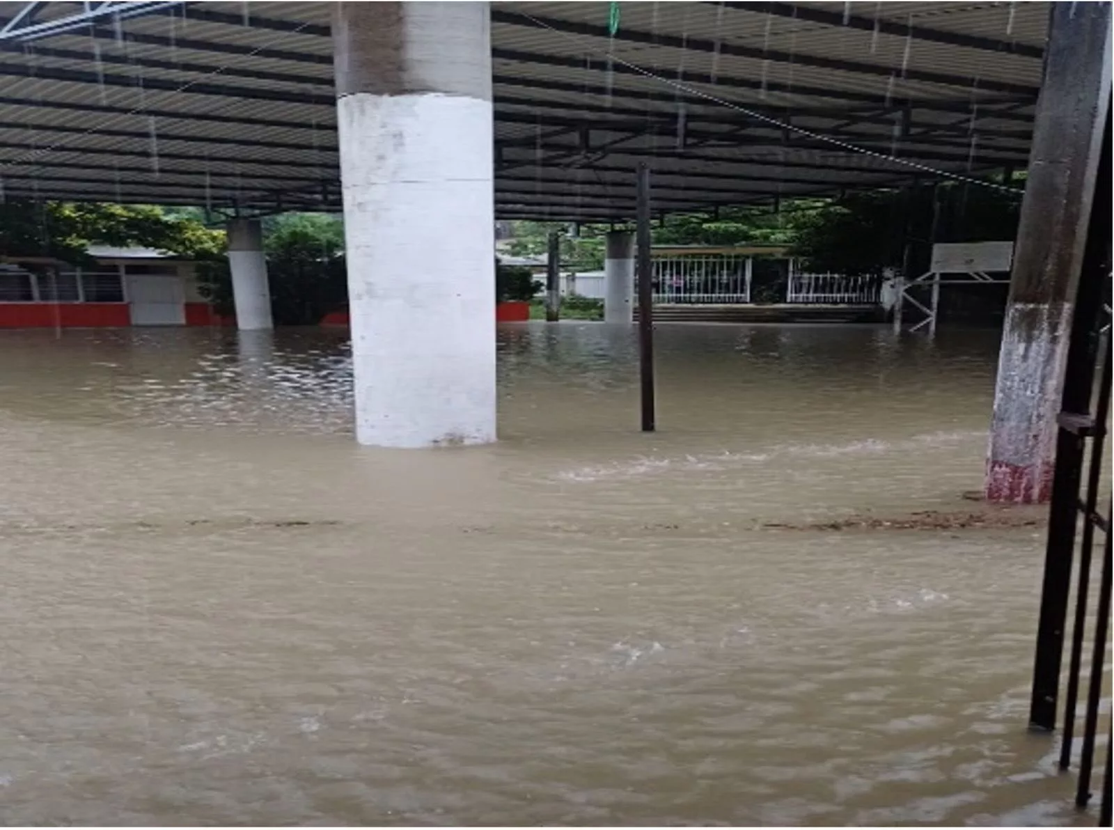 En Ciudad Valles, el cierre de la preparatoria Juan Moreno Cortés y la primaria Club de Leones No. 1 fue provocado por desbordamientos y accesos bloqueados.