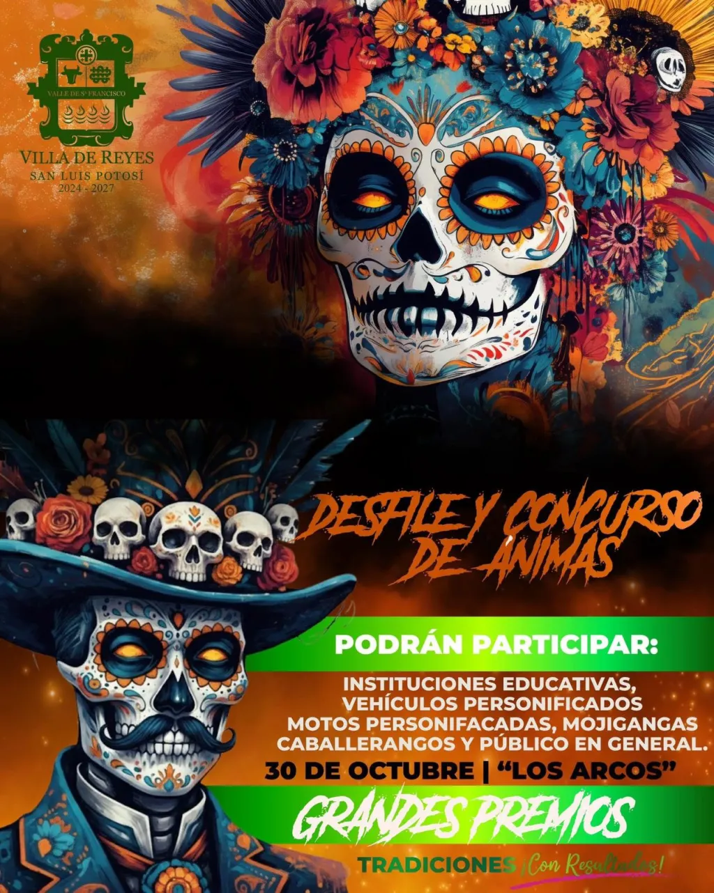 El evento se llevará a cabo el próximo 30 de octubre, iniciando con el desfile en “Los Arcos” del municipio. Las bases de participación se darán a conocer próximamente en las redes oficiales del Ayuntamiento. ¡No te quedes fuera de esta gran celebración y acompáñanos a vivir una de las tradiciones más emblemáticas de Villa de Reyes!