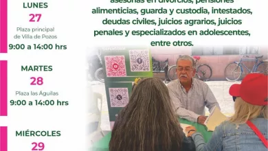 Con el objetivo de brindar asesorías jurídicas gratuitas y fortalecer el acceso a la justicia, el Gobierno Municipal de Villa de Pozos, en coordinación con la Defensoría Pública del Estado, llevó a cabo el programa “Tu Defensoría” en la plaza principal de la localidad, donde se ofrecieron servicios de orientación en materia de divorcios, pensiones alimenticias, guarda y custodia, intestados, deudas civiles, juicios agrarios, penales y especializados en adolescentes, entre otros temas legales.