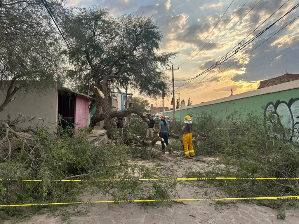 El director de Parques y Jardines, Emmanuel Aguiñaga Maldonado, informó que las afectaciones se presentaron principalmente en la calle Tercera Privada de Galeana, en Ciudad Satélite, en la avenida Ricardo B. Anaya; así como en el jardín principal de Villa de Pozos. En estos puntos, se realizaron labores inmediatas de revisión y retiro del material caído.