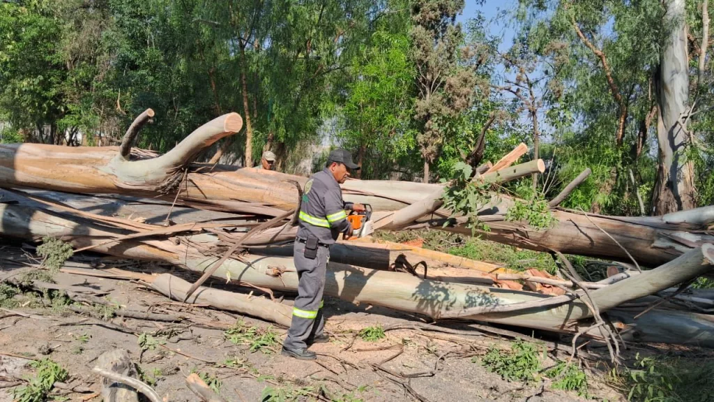 En coordinación con la Dirección de Protección Civil Municipal, se procedió al acordonamiento de las áreas afectadas con el objetivo de evitar riesgos a la población, para posteriormente, llevar a cabo trabajos de limpieza y retiro de árboles, permitiendo restablecer la normalidad en los espacios públicos.
