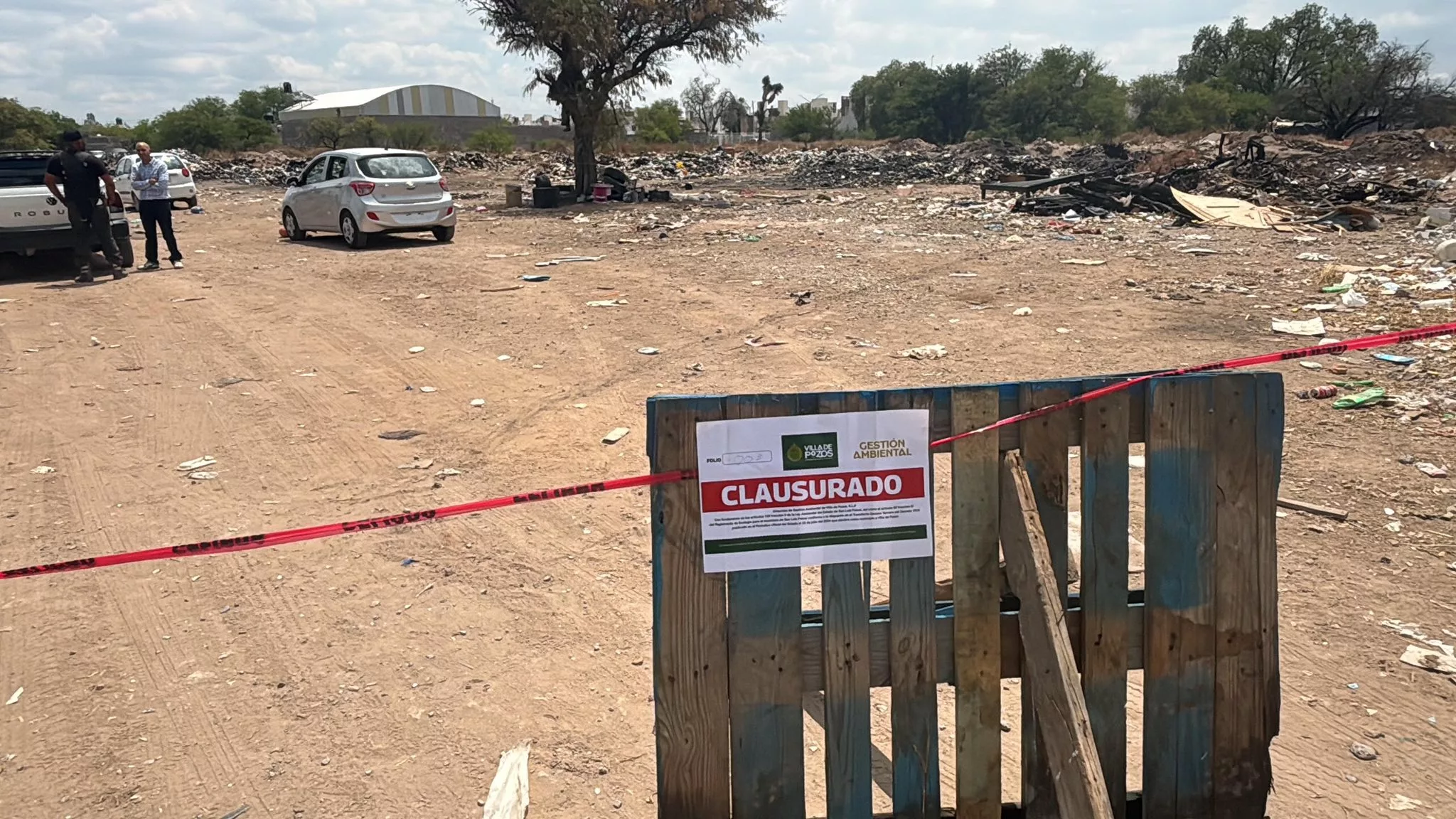 El director de Gestión Ambiental, Alejandro Leal Espinosa, explicó que la clausura se realizó tras un operativo de inspección y vigilancia, en el cual se procedió al acordonamiento de los accesos y la colocación de sellos de clausura en el predio, con el objetivo de evitar que continúe la acumulación irregular de residuos en el lugar y frenar el deterioro ambiental que se venía generando.