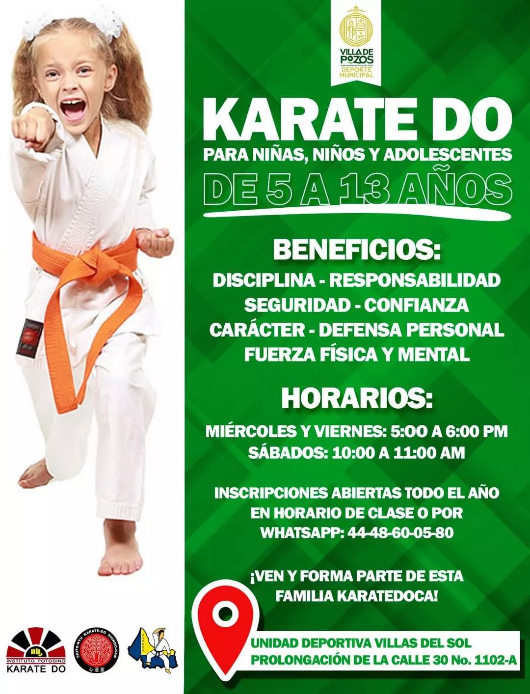 Con la finalidad de ofrecer herramientas de defensa personal y fomentar el desarrollo físico de la niñez y adolescencia, el Gobierno de Villa de Pozos, a través de la Dirección de Deporte, implementó clases de Karate Do dirigidas a niñas, niños y adolescentes de entre 5 y 13 años.