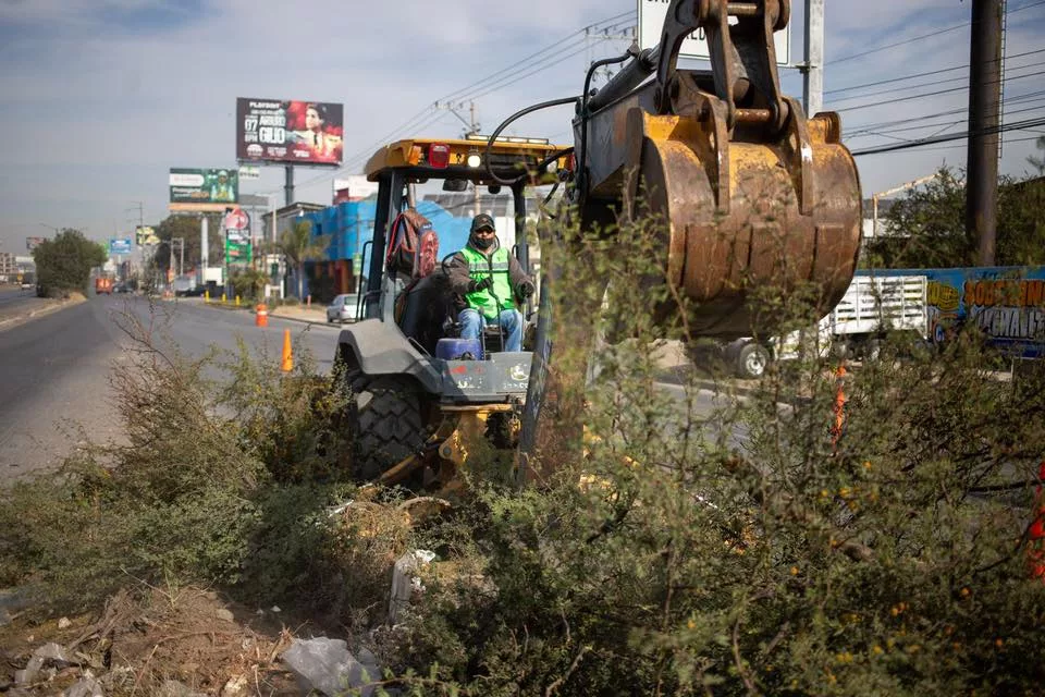Las acciones comenzaron con el despliegue de cuadrillas de ambas dependencias, quienes realizarán el retiro de maleza, arbustos y residuos acumulados,desde el acceso a Villa de Pozos hasta el Circuito Potosí, con el objetivo de mejorar la imagen urbana y fortalecer las condiciones de seguridad vial en uno de los principales accesos a la zona metropolitana.
