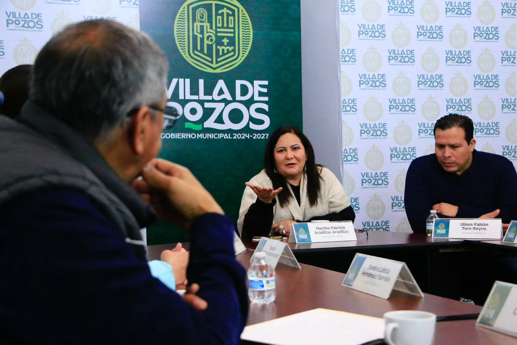 Durante la mesa de trabajo de la Comisión del Agua, el Gobierno Municipal de Villa de Pozos, encabezado por la Presidenta Concejal Paty Aradillas, reafirmó su compromiso de atender la problemática del abasto de agua, mediante el análisis de diversas estrategias y fortalecer las acciones que ya se implementan, para dar respuesta a una de las principales demandas de la ciudadanía.