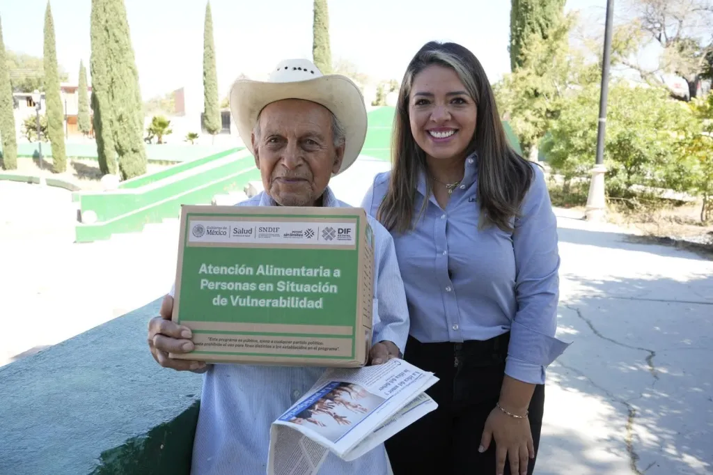 Como parte de estas acciones, el DIF Municipal de Villa de Pozos realizó la entrega de apoyos alimentarios del programa de Atención Alimentaria a personas en situación de vulnerabilidad en la comunidad de Santa Rita, lo que reafirmó el compromiso de mejorar la calidad de vida de las familias del municipio.