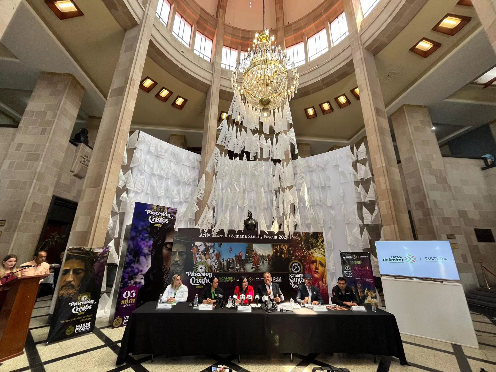 En coordinación con la Secretaría de Cultura del Estado, se dio a conocer una serie de actividades que se llevarán a cabo del 27 de marzo al 4 de abril, en el que destaca el recorrido “Tras las Huellas de la Fe” en la Plaza Principal, así como la instalación de altares en honor a la Virgen de los Dolores y conferencias que resaltan la identidad y simbolismo de la tradicional Procesión de los Cristos, una manifestación profundamente arraigada en el corazón de Villa de Pozos.