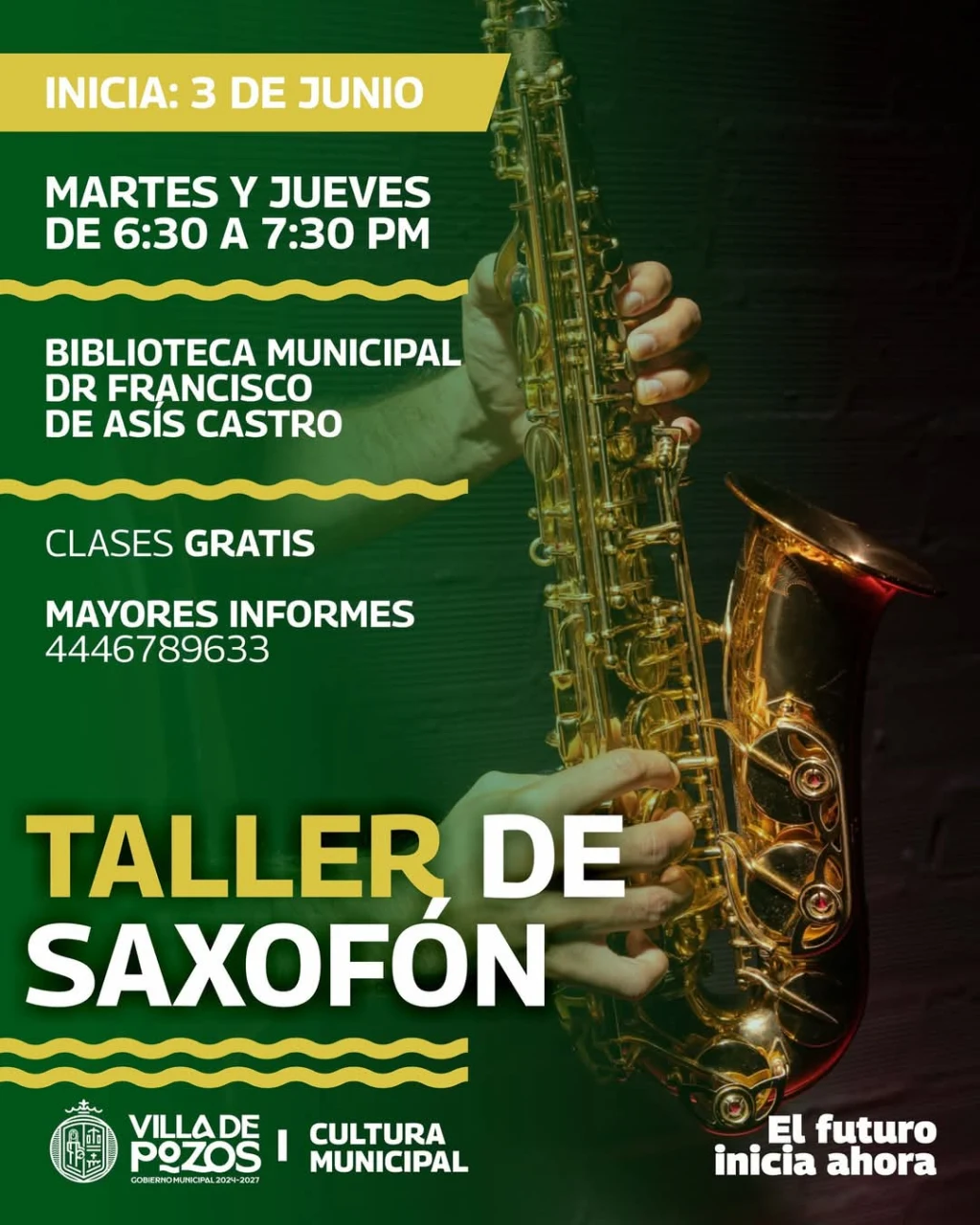 El Gobierno de Villa de Pozos, a través de la Dirección de Cultura, inició un taller de saxofón con el propósito de fomentar el desarrollo artístico y musical entre la localidad, diseñado para que los participantes no solo aprendan técnicas de ejecución e interpretación, sino también fortalezcan su capacidad de expresión a través de la música.