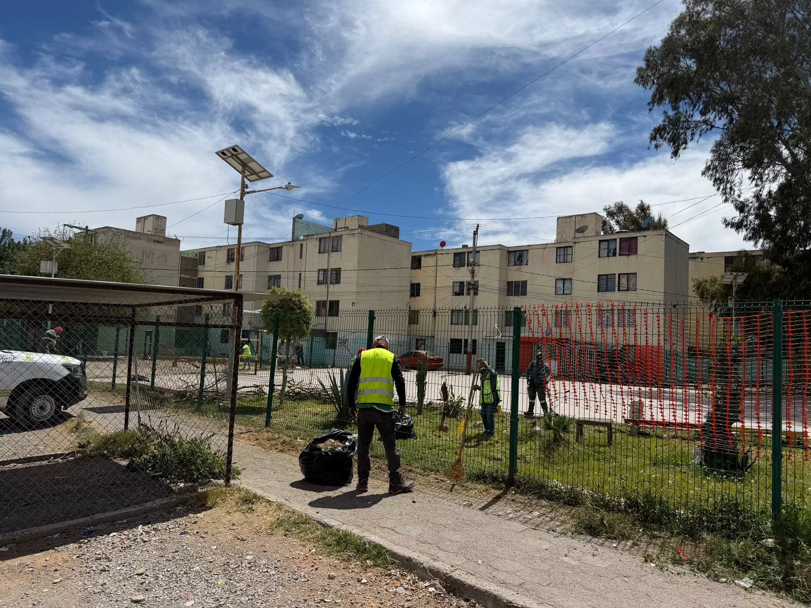 La Dirección de Servicios Municipales de Villa de Pozos llevó a cabo trabajos de rescate de espacios públicos en la Plaza Cóndor, ubicada en la colonia Rancho Viejo Primera Sección, con el objetivo de mejorar las condiciones del lugar y brindar un entorno más limpio y ordenado para las familias de la zona.