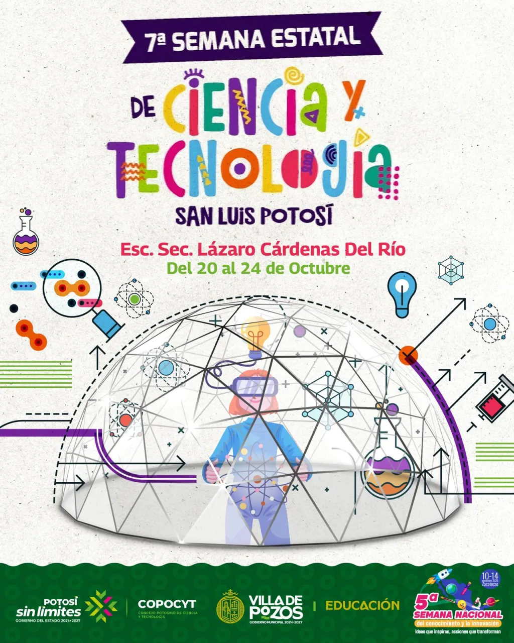 El municipio de Villa de Pozos a través de la dirección de Educación y en coordinación con el Consejo Potosino de Ciencia y Tecnología (COPOCYT) será sede de la séptima semana estatal de Ciencia y Tecnología que se realizará en la Escuela Secundaria Lázaro Cárdenas del Río del 20 al 24 de octubre.