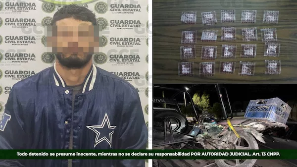 En la comunidad de Salitral de Carrera, en el municipio de Villa de Ramos, nuestros elementos de la Guardia Civil Estatal detuvieron a Víctor “N” de 28 años, quien es vinculado a presuntas actividades ilegales con el aseguramiento de 20 dosis de “cristal” y una motocicleta Italika.