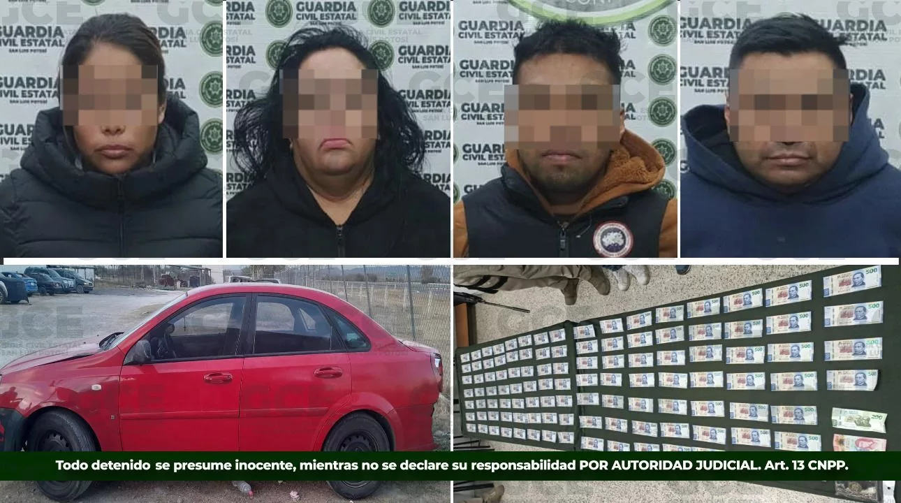Derivado de la rápida intervención a un reporte ciudadano, elementos de la Guardia Civil Estatal lograron frustrar un intento de circulación de billetes apócrifos en comercios del municipio de Real de Catorce, asegurando a cuatro personas presuntamente involucradas en estos hechos.