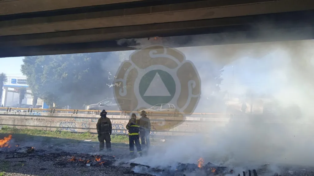 Elementos de la Dirección de Protección Civil Municipal atendieron esta mañana de miércoles un reporte de conato de incendio en la parte baja del distribuidor vial Juárez, en la capital potosina.