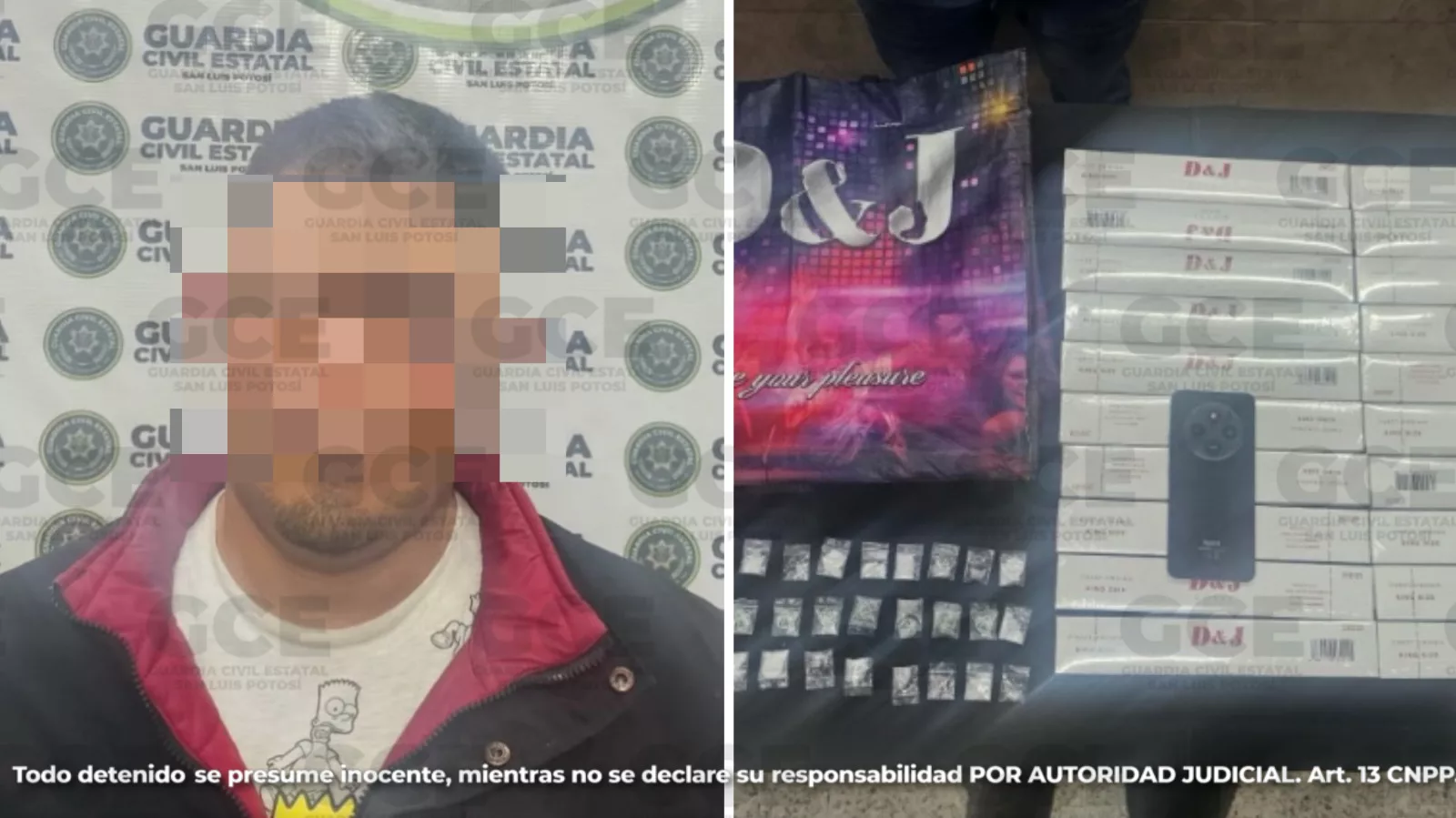 Los hechos ocurrieron en la colonia El Calvario, en el municipio de Villa de Reyes, donde efectivos de la Guardia Civil Estatal en coordinación con personal del Ejército mexicano, detuvieron a un presunto, identificado como Wilmer «N» de 36 años, originario de Honduras, a quien se le aseguraron 20 paquetes de cigarros apócrifos, que incumplían con la normativa de salud, así como 30 dosis de metanfetaminas y un teléfono celular. Dicha persona cuenta con antecedentes criminales, por probables delitos contra la salud.