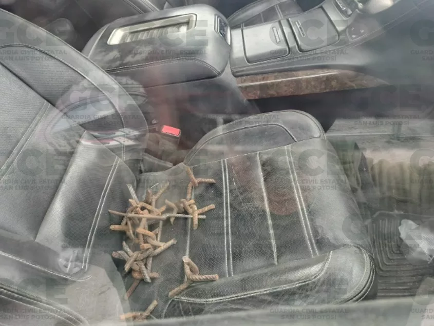 Los recorridos que realizan nuestros agentes de la Guardia Civil Estatal en coordinación con elementos del Ejército mexicano y Guardia Nacional, en las comunidades de la capital potosina, dieron como resultado el aseguramiento de una camioneta blindada, en cuyo interior había varios artefactos metálicos conocidos como “poncha llantas”.
