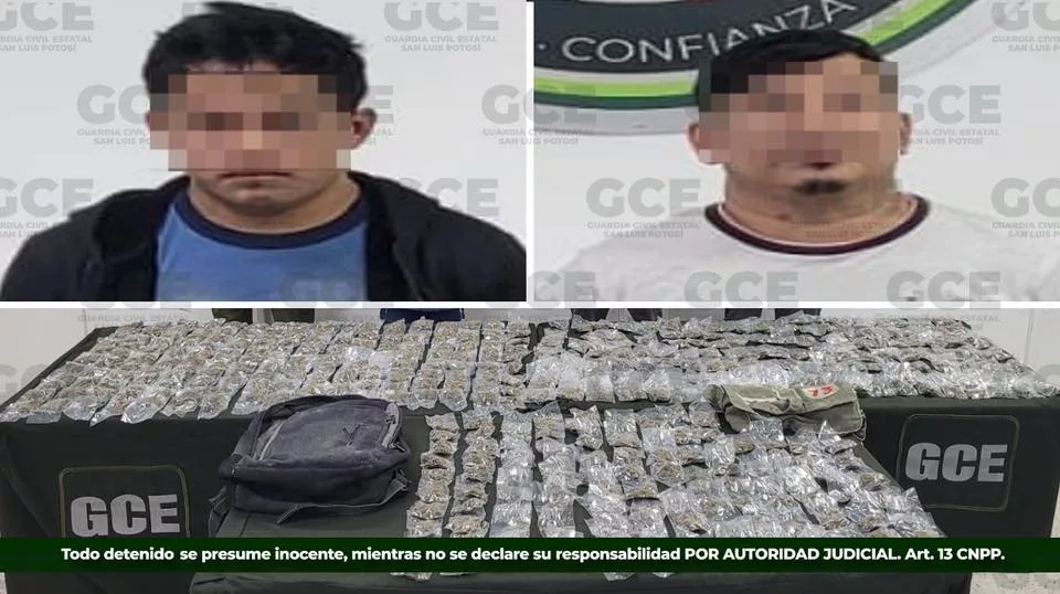 En el marco de la Estrategia Integral de Seguridad, la Guardia Civil Estatal (GCE) detuvo a dos masculinos en el municipio de Matehuala, presuntamente vinculados con delitos contra la salud y consideradas objetivos prioritarios.