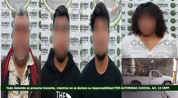 Por lo anterior, Antonio “N” de 54 años, Edgar “N” de 24 años, Saúl “N” y Andrea “N”, ambos de 23 años, fueron detenidos y quedaron a disposición de la Fiscalía General del Estado.
