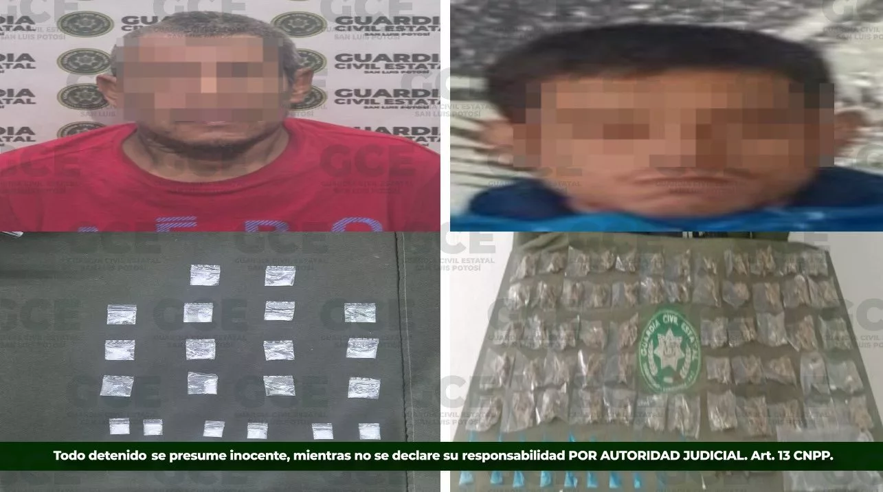 Derivado de estas acciones, se detuvo a dos presuntos distribuidores de narcóticos en la capital potosina y en el municipio de Matehuala, asegurando dosis de metanfetaminas, “crack” y marihuana.