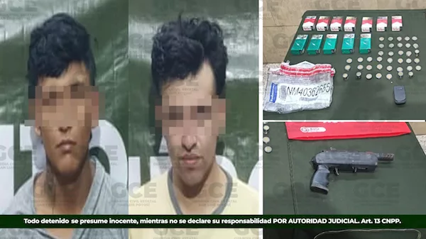 Un operativo coordinado entre la Guardia Civil Estatal y el Ejército Mexicano en la zona centro de la capital potosina, permitió la detención de Leonardo “N” de 21 años y Ángel “N” de 20 años en la calle de Pedro Montoya, quienes son vinculados a actividades que afectan el patrimonio de nuestra comunidad.
