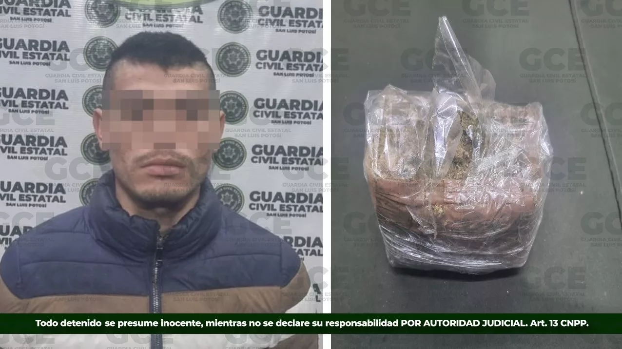 Durante los trabajos de inteligencia que desarrolla la Guardia Civil Estatal en coordinación con personal de la Defensa, un presunto vendedor de estupefacientes fue detenido en la capital potosina, en el Barrio de Tlaxcala.