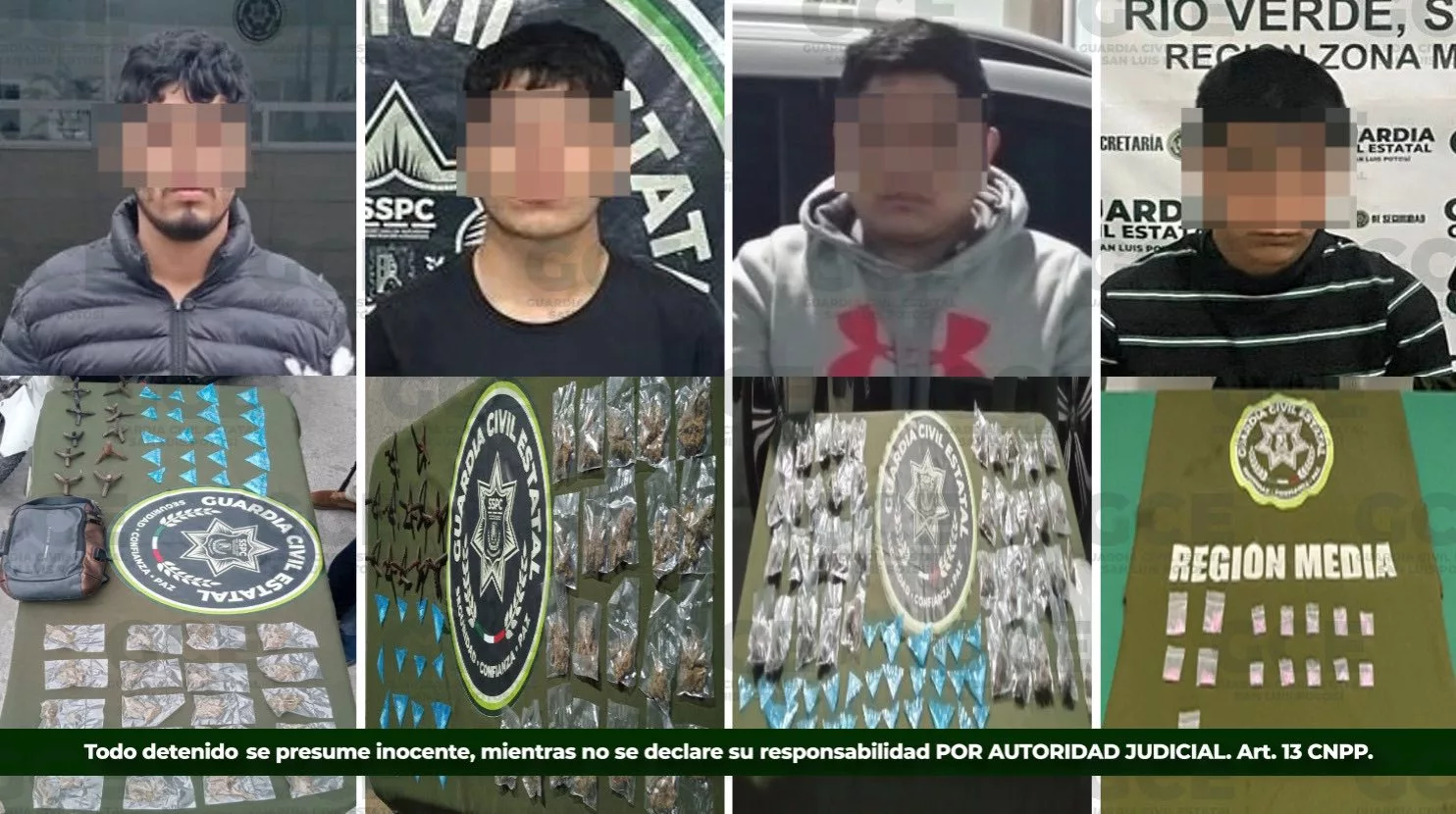 Derivado de estas acciones, se detuvo a tres presuntos distribuidores de narcóticos en los municipios de Ciudad Valles y Tamazunchale, asegurando dosis de metanfetaminas y marihuana.