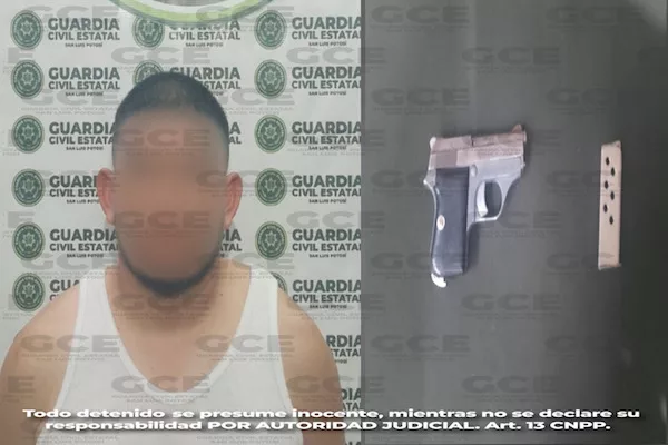 Durante las labores de prevención y disuasión del delito, la Guardia Civil Estatal detuvo a una persona, en el municipio de Villa de Pozos, por el probable delito de portación de un arma de fuego. Se trata de Juan “N” de 30 años, quien fue despojado de un pistola con un cargador desabastecido.