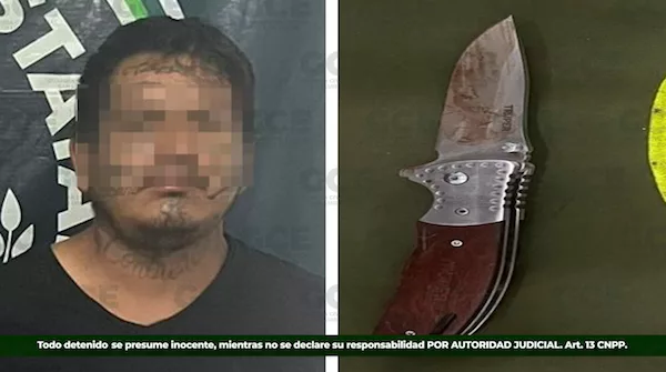 Nuestros elementos atendieron un llamado de auxilio en un local de venta de comida, donde fue detenido el presunto, quien portaba una navaja y con la cual, causó la muerte de un perro criollo que acompañaba una mujer.