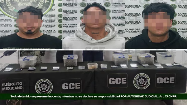 La Guardia Civil Estatal informa que, como resultado de los operativos permanentes de seguridad y vigilancia implementados para la prevención del delito y el combate frontal al narcomenudeo, se logró la detención de tres personas del sexo masculino en la colonia Misión del Palmar, perteneciente a Villa de Pozos, San Luis Potosí.