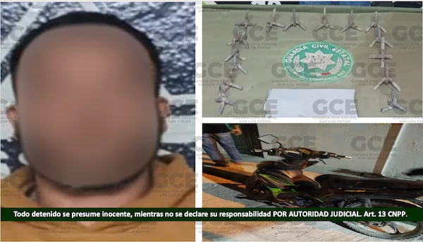 Derivado de los trabajos preventivos, realizados en el municipio de Matehuala, un hombre resultó detenido, tras asegurarle objetos prohibidos, conocidos como “poncha llantas”, además de una motocicleta en la que se desplazaba.