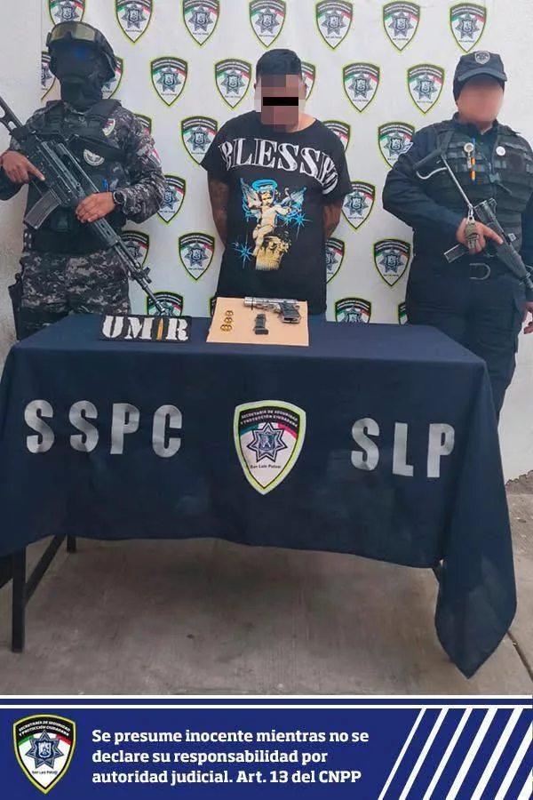En la col. Satélite I. Madero en la calle Arquitos fue reportada una riña, donde los oficiales detectaron a un hombre empuñando un arma de fuego. Aunque el señalado trató de huir, fue asegurado logrando el decomiso de una pistola abastecida con 7 cartuchos