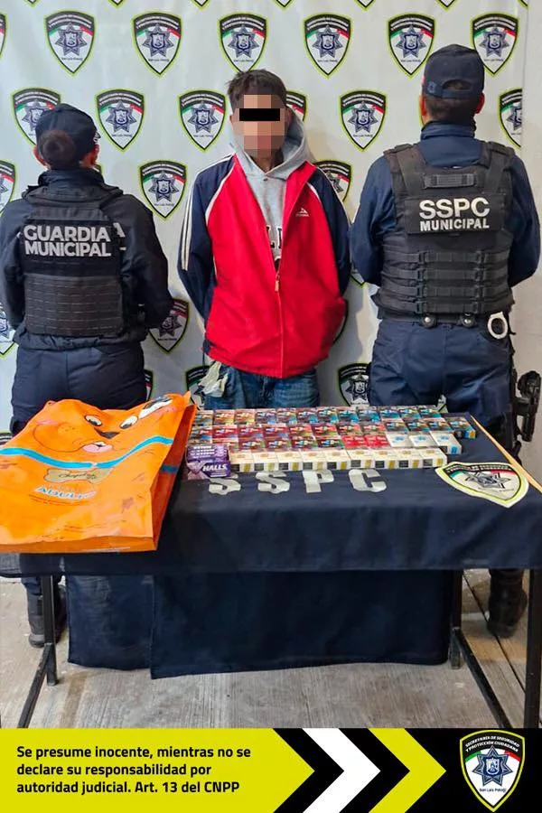 El señalado al ver la unidad policial huyó del lugar corriendo, por lo que de inmediato se activó una persecución por diversas calles de la zona, dándole alcance en la avenida Hernán Cortés de la colonia Morales. En la revisión preventiva de seguridad a Francisco Javier “N” de 23 años, se le encontró en posesión de 46 cajetillas de cigarros y un paquete de caramelos que portaba dentro de un costal.
