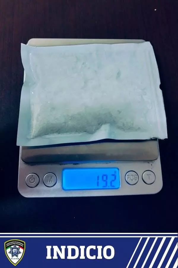 El hecho ocurrió en el cruce de Negrete y Lic. Nava, donde los oficiales observaron al individuo que, al notar la presencia policial, intentó evadirlos. En su intento por escapar, arrojó al suelo una bolsa de plástico transparente que contenía un polvo blanco con características de “cristal”, con un peso aproximado de 19.2 gramos.